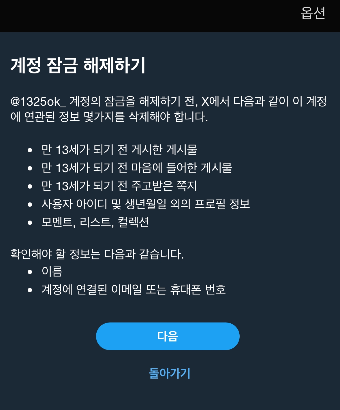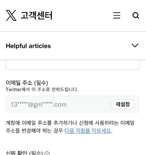 X 아이디,이메일 주소 등 개인정보를 입력하고 신원 확인에 신분증을 찍어서 올려주세요.