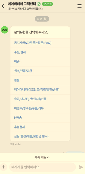 네이버페이 고객센터 - 네이버톡톡