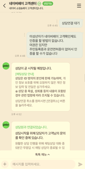 네이버페이 네이버 톡톡 문의로 들어가주세요.